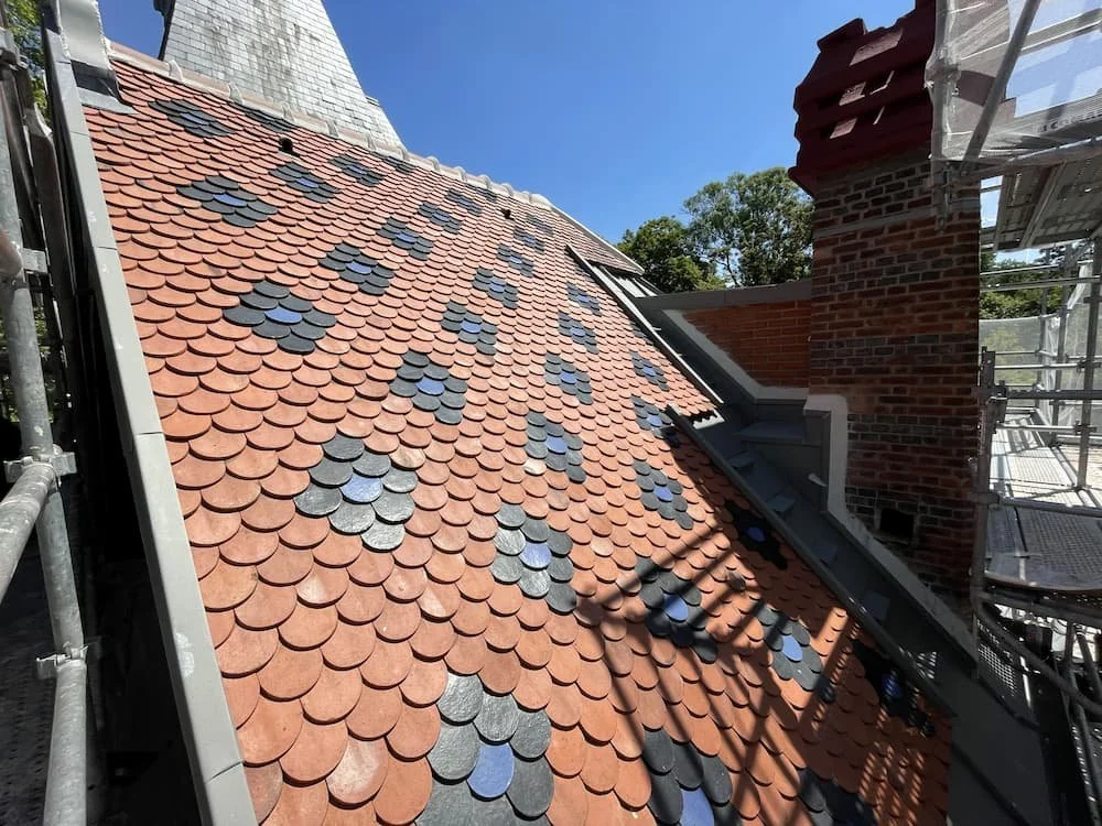 Couverture en tuiles plates de Montchanin en réemploi